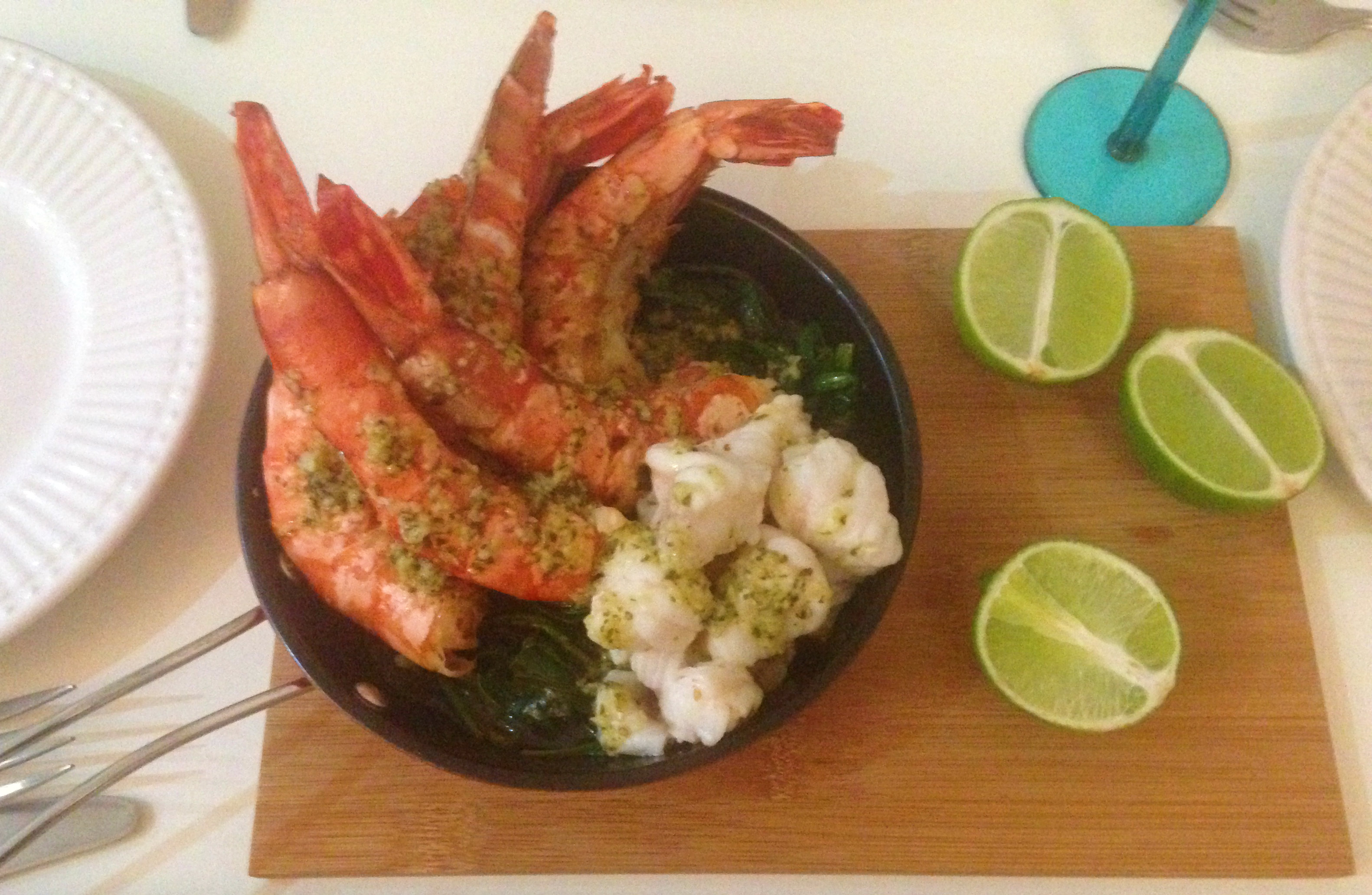 Here’s a dish to splurge out on this payday weekend – garlic, lime and basil pan fried tiger prawns and monkfish! I created this dish for a 65th birthday lunch I catered for last month.