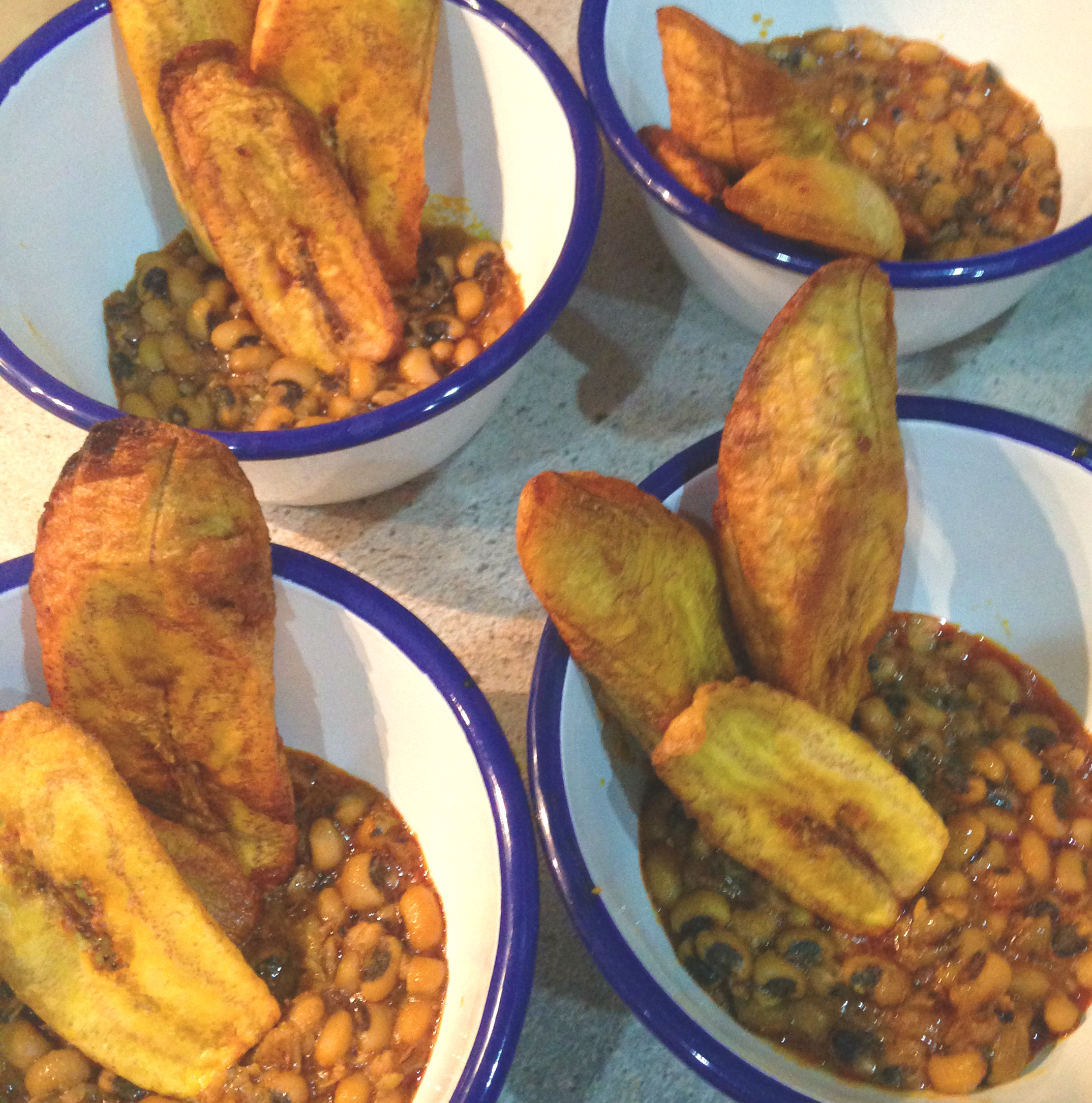 I like to say it is West Africa’s equivalent (with many countries and towns having its own take on it) to baked beans but closer in texture and consistency to refried beans. In Sierra Leone and Liberia it is eaten for breakfast with some sweet bread to mop up the sauce, setting you up nicely for a long day. Or at lunch or dinner it is served with sweet fried plantains – HEAVEN!