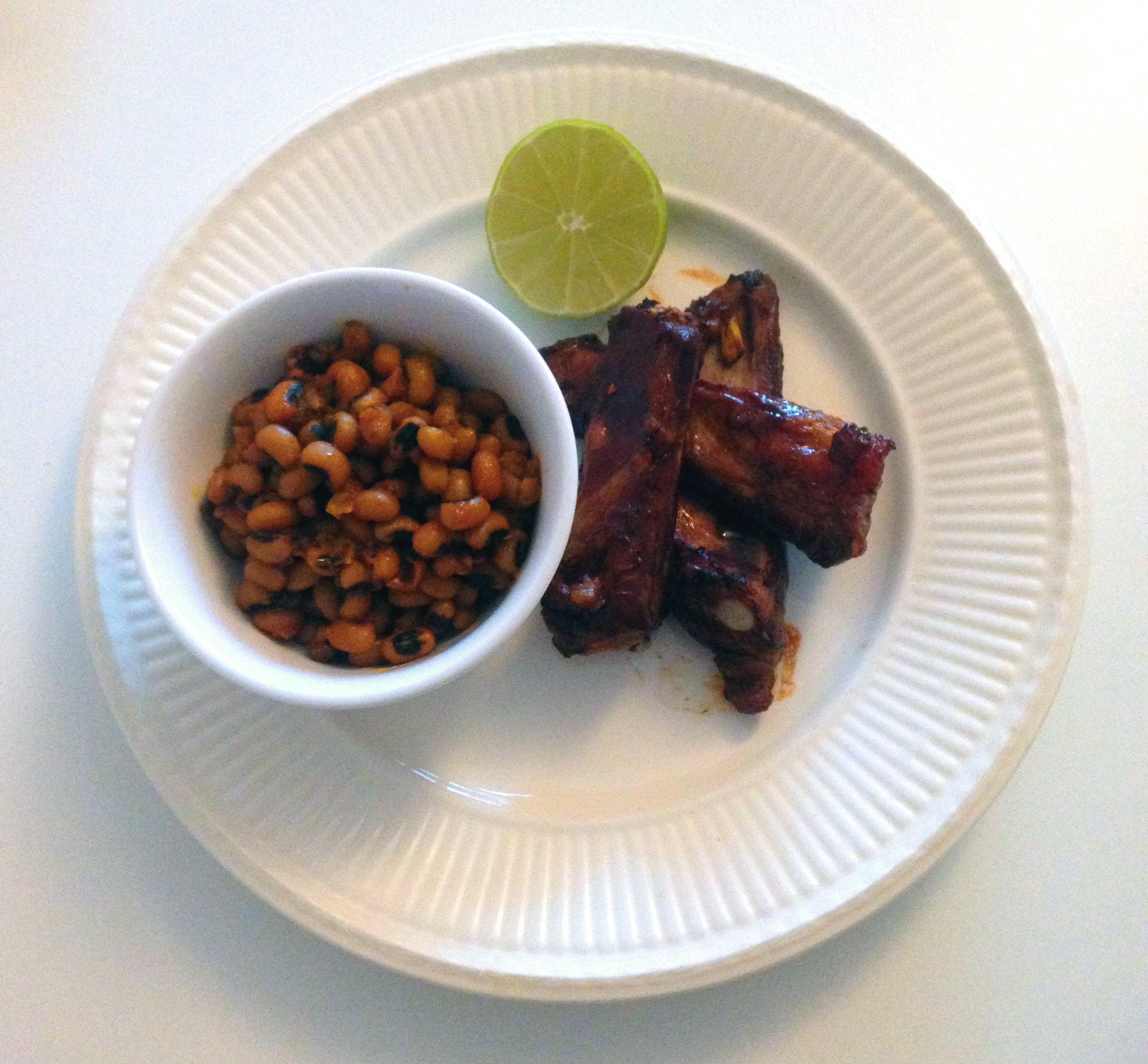 Garnish dish with some extra lime to squeeze over the ribs.